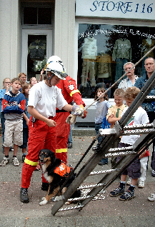 Alles in allem war das ein schöner Tag. Ich glaube, dass ich alles richtig gemacht habe, ich habe jedenfalls ganz viele Leckerli bekommen. Und die Zuschauer haben keine Gelegenheit ausgelassen, mich (und natürlich auch meine Kollegen) ausgiebig zu streicheln. Vor allem die ganz kleinen Menschen sind dabei immer besonders eifrig. Deshalb mögen wir die auch besonders gern. Es ist für uns immer wieder schön, wenn sie merken, dass sie vor uns keine Angst zu haben brauchen, denn wir Rettungshunde sind nicht gefährlich. Wir handeln immer nach dem Motto: