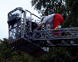 Das ist Meiko. Er ist zusammen mit Kirsten auf die große Feuerwehrleiter geklettert und hat sich dann abseilen lassen. Das hat er mal wieder ganz prima gemacht. Ich finde, hier sieht er richtig zufrieden aus.