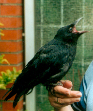 Wir haben im Juni 2002 eine junge etwa 5 Wochen alte Rabenkrähe bei uns aufgenommen. Der Vogel, von uns später „Vivaldi” genannt, wurde in halb verhungertem Zustand in Hamburg-Bostelbek gefunden und von uns aufgepäppelt.